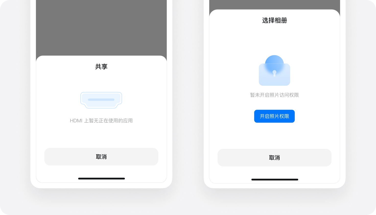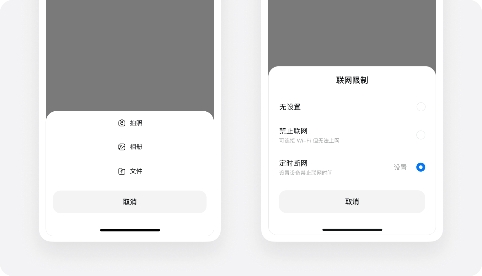 一种轻量的内容展示的模态窗口,由其他控件触发,通常屏幕底部弹出一块自定义内容区域,用户执行与其当前环境密切相关的小范围任务。
