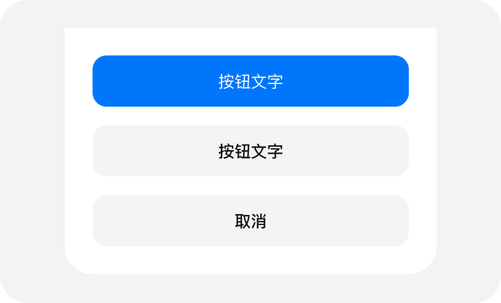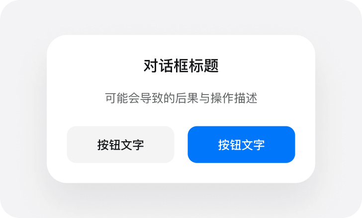 - 根据按钮的数量多少选择不同的布局展示,建议最多展示两个,如无必要,勿增实体。