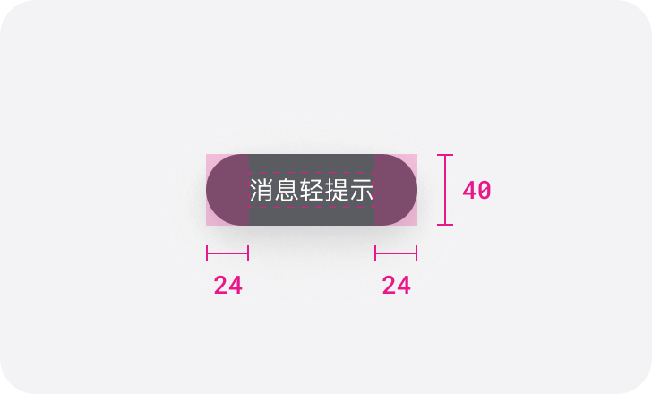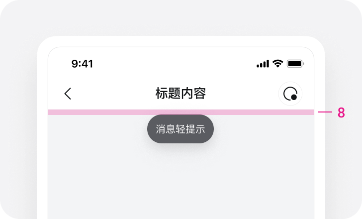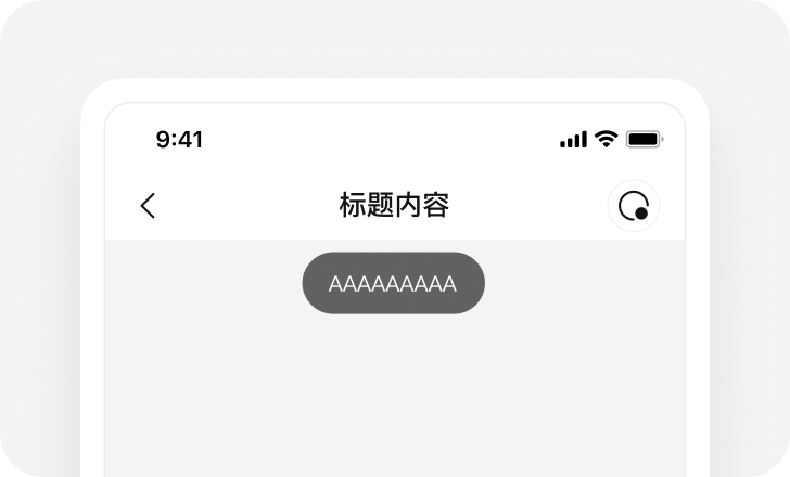 - 展示时间:停留 2 s(对于文字较多或者需要用户明确感知到的提示可以根据业务需要做停留时间调整,建议调整时间为 3.5 s,最长 5 s)。