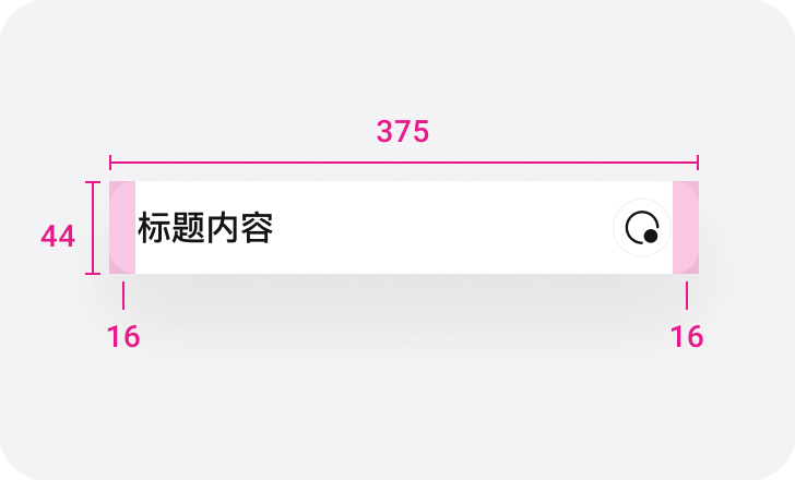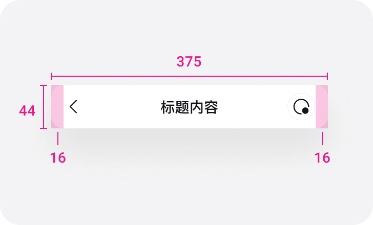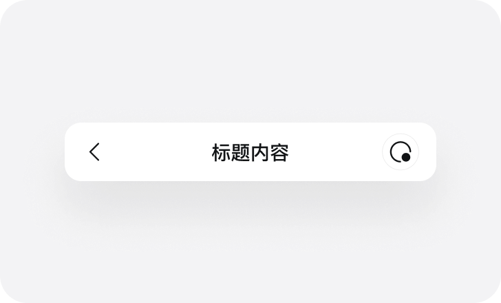 用于应用内页,左侧后退按钮,居中标题。标题提示当前功能名称,通过左侧后退按钮回到上级页面。