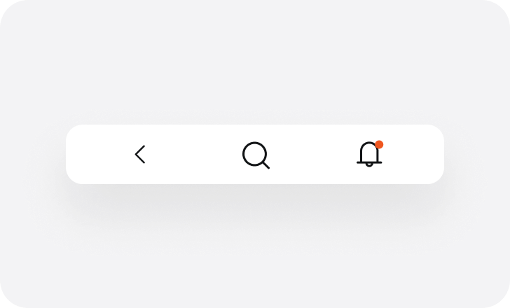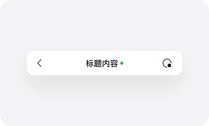 用于应用内页,左侧后退按钮,居中带有徽标的标题。通常用于提示当前选择设备的名称、状态等信息,徽标形式不限于圆点、图标、提示标签。