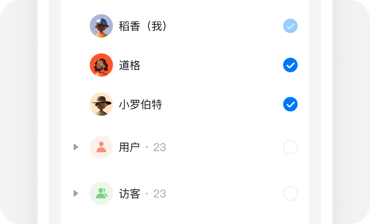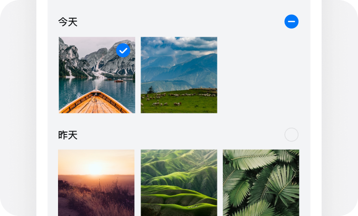 在网格多选场景下,建议将复选框放置在右上角,与当前日期右侧的全选按钮呼应。支持滑动选择 / 取消功能。