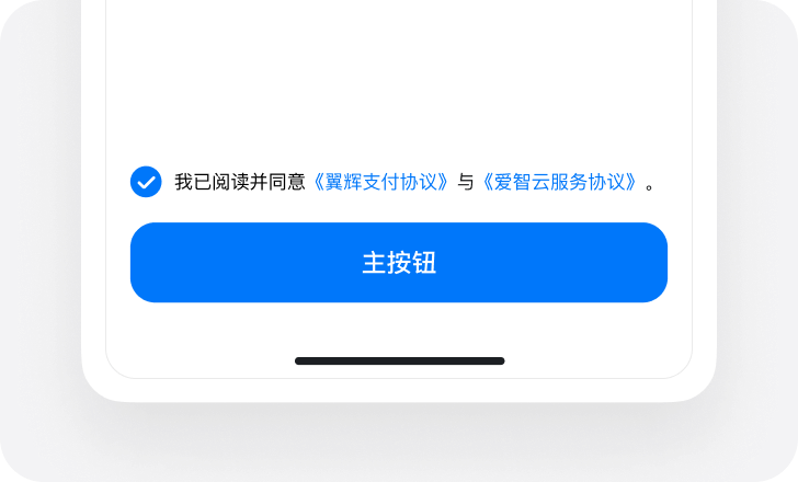 - 对于协议等的勾选框,跟随界面中主要操作附加出现,默认不做选中。