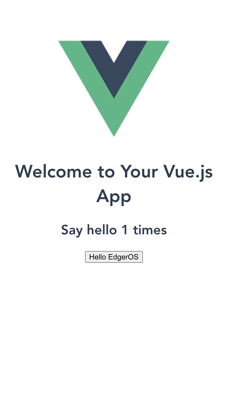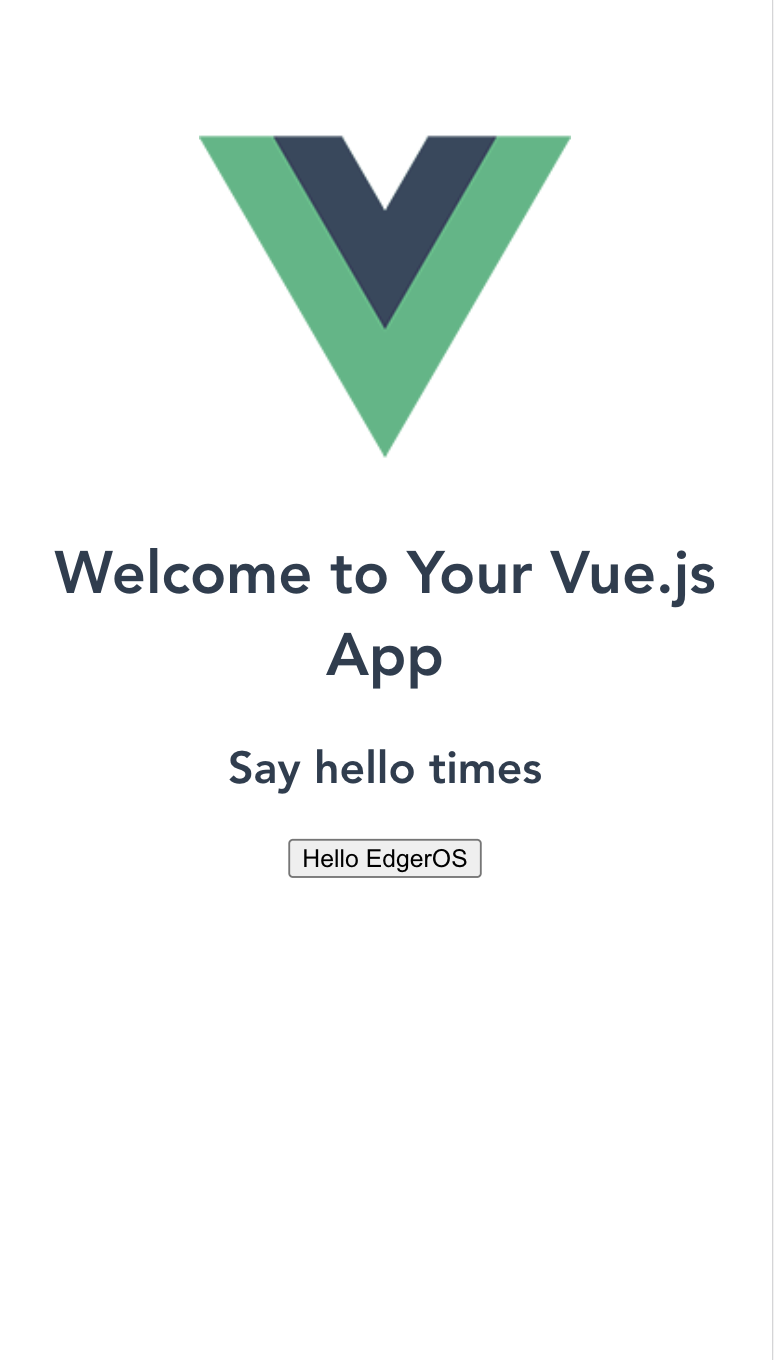 <template> <div class="hello"> <h1>{{ msg }}</h1> <h2>Say hello {{ reply.times }} times</h2> <button @click="sayHello">Hello EdgerOS</button> </div> </template> <script> export default { name: "HelloWorld", props: { msg: String, }, data() { return { reply: {}, }; }, methods: { async sayHello() { try { const response = await fetch("/times"); this.reply = await response.json(); } catch (error) { console.error("error is: ", error); } }, }, }; </script>修改完成后,这段代码将在界面上增加一个可点击的按钮和一个文本展示区域,文本展示区域的内容由步骤 2 中的 REST 调用结果填充。