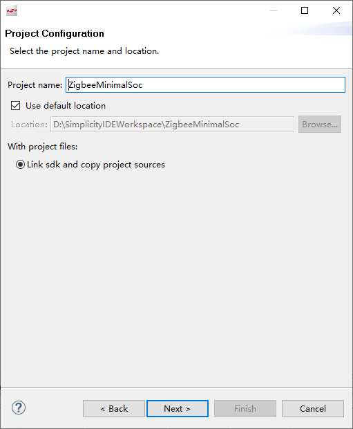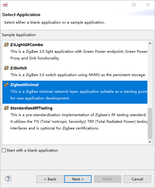 选择 ZigbeeMinimal 后点击 Next 如下所示: