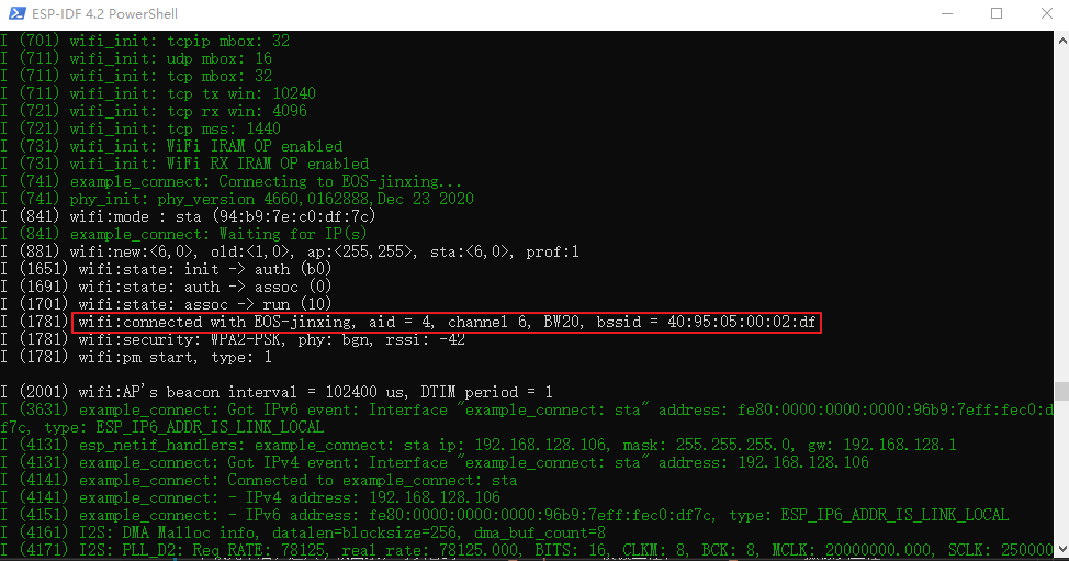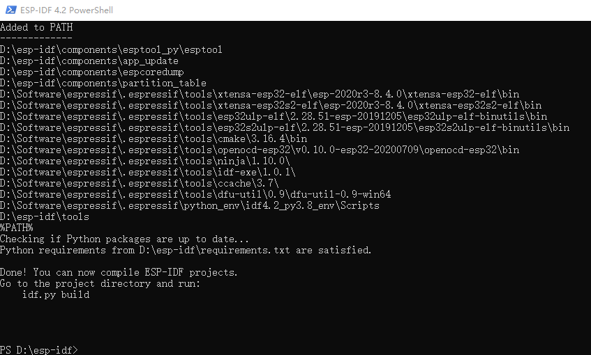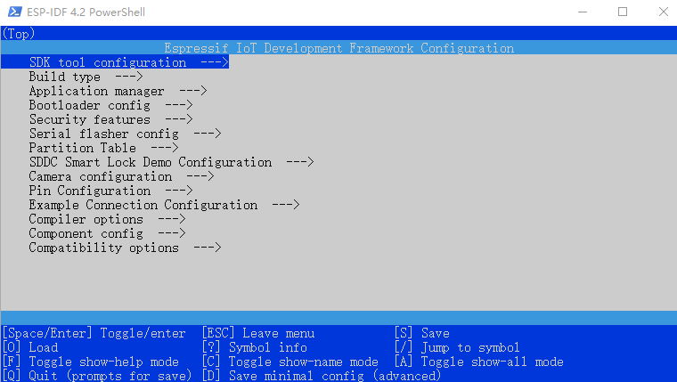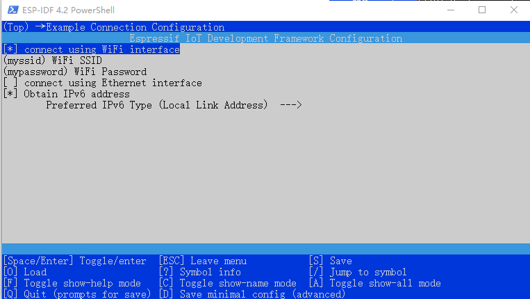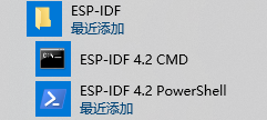 首先通过 Windows 开始菜单中的 ESP-IDF 4.2 CMD 或 ESP-IDF 4.2 PowerShell 打开命令行工具: