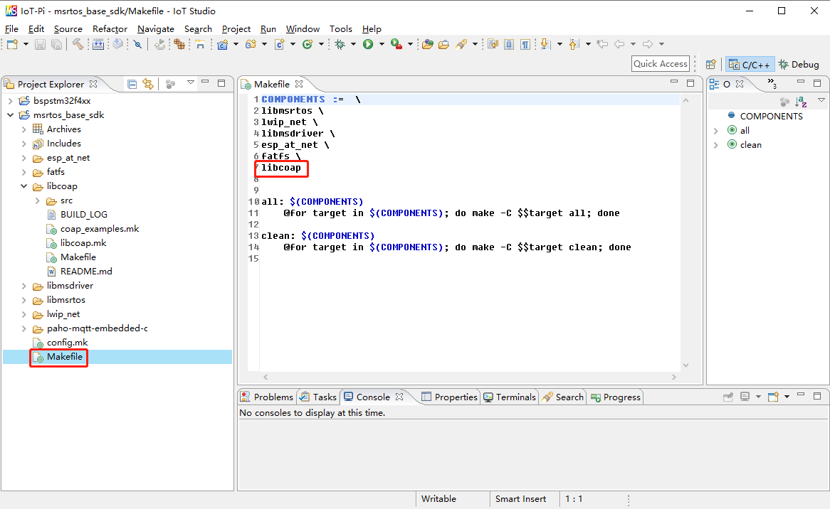 在 msrtos_base_sdk 根目录下的 Makefile 中添加 libcoap,如下图所示: