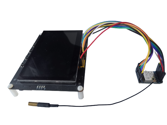 需要在 SX1278 模块的 I-PEX 接口接入弹簧天线,实物连接如下图所示:
