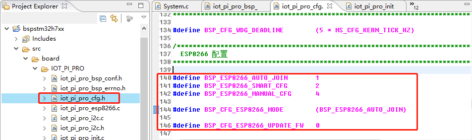 bspstm32h7xx/src/board/IOT_PI_PRO/iot_pi_cfg.h 文件为 bspstm32h7xx 工程的 IoT Pi Pro 开发板的配置头文件,与 IoT Pi Pro 连接 Wi-Fi AP 相关的配置宏如下: