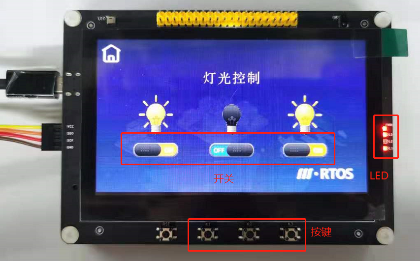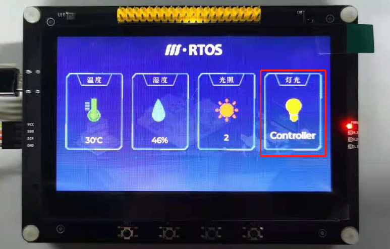 按下 IoT Pi Pro 开发板的 RESET 按键,MS-RTOS 操作系统启动后,将自动运行 0x90100000 地址处的 demo_lvgl_sddc 程序: