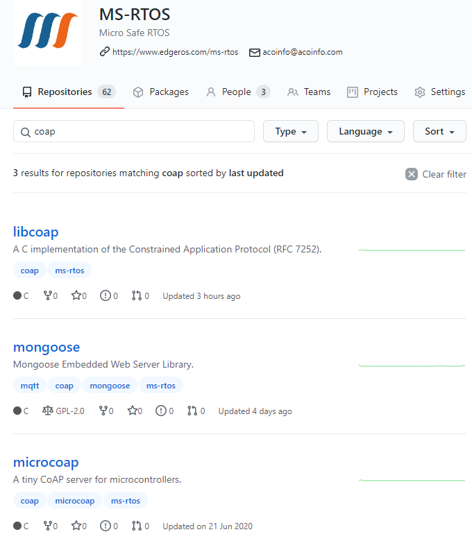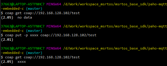 在 MS-RTOS 的 开源社区 提供了以下三个 CoAP 库的移植: