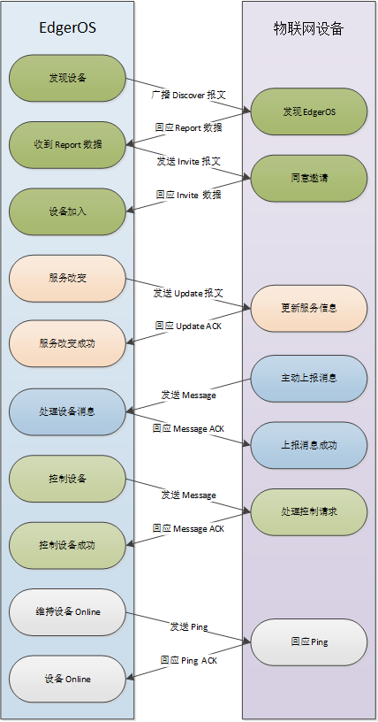 - EdgerOS 与设备间的双向数据通信,数据可加密,支持带有消息重传和确认的可靠通信方式
