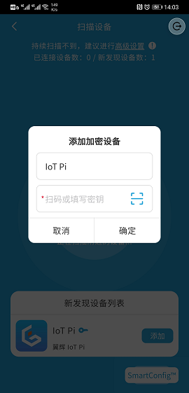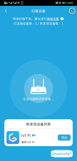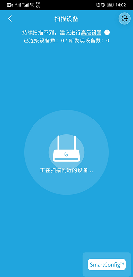 启用 SmartConfig 后,扫描设备”页面右下角会出现 SmartConfig 提示: