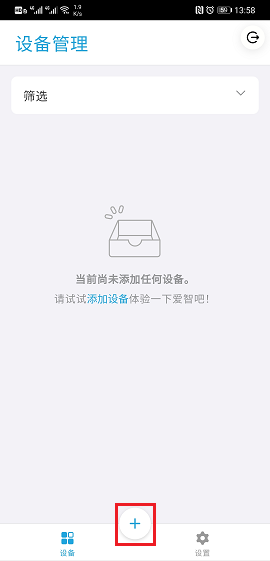 在设备管理界面,点击下方的加号图标进入扫描设备界面: