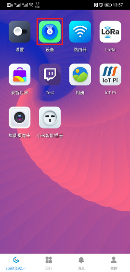 手机通过爱智 App 进入 EdgerOS 后,点击设备 App,进入设备管理界面: