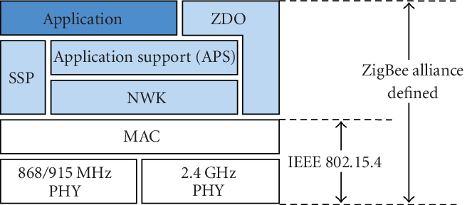ZigBee 底层采用了 IEEE 802.15.4 标准规范的媒体访问层与物理层: