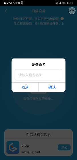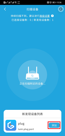在设备管理界面,点击下方的加号图标进入扫描设备界面: