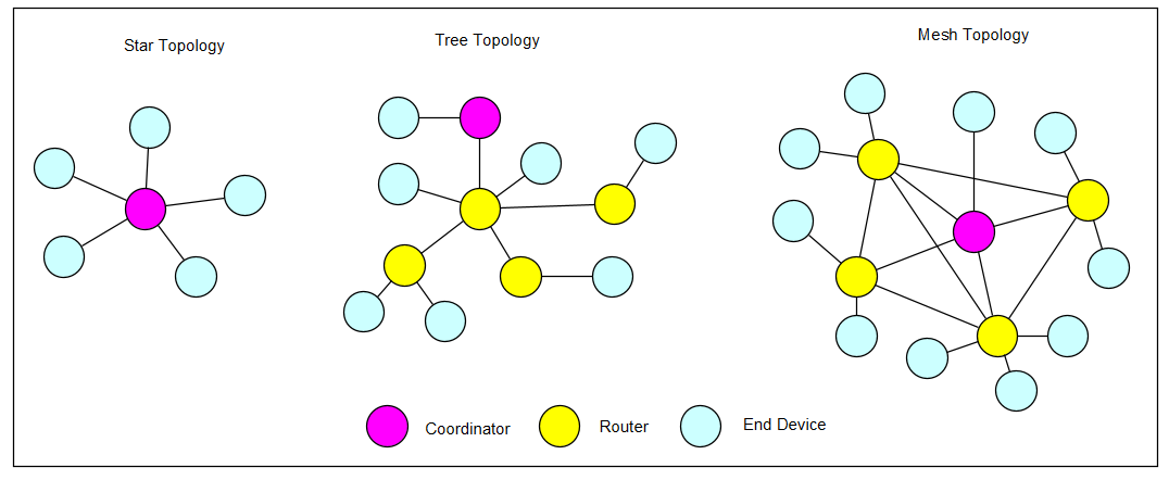 ZigBee 有星型、树型和网状三种网络架构,可根据实际需求选择合适的 ZigBee 网络架构,三种 ZigBee 网络架构各有优势。