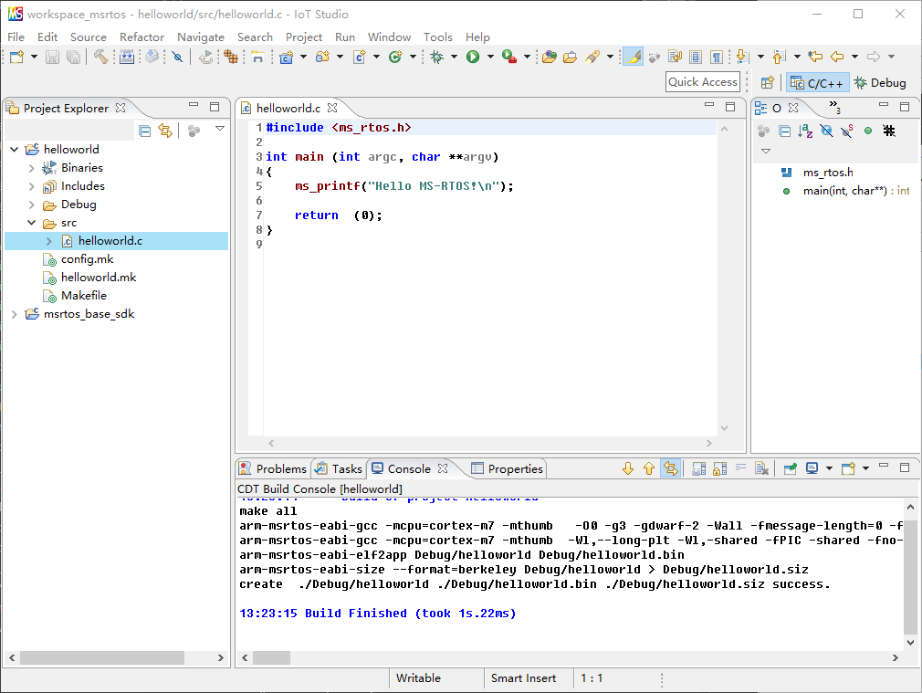 开发 MS-RTOS 需要安装专用的集成开发环境 IDE —— IoT Studio,MS-RTOS 开发工具包下载 ,下面简述每款 MS-RTOS 开发工具的用途: