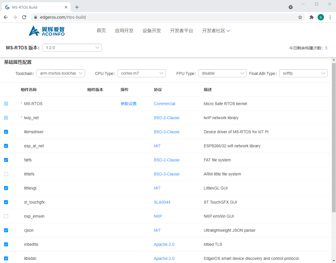 需要登录 MS-RTOS 云开发平台,进入 MS-RTOS 构建界面: